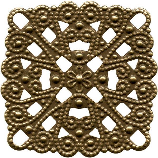 28mm Antiqued Brass Plated Filigree, Square